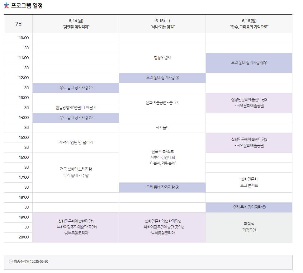 - 📅 **축제 기간**: 2025년 6월 13일 (금) ~ 2025년 6월 15일 (일)