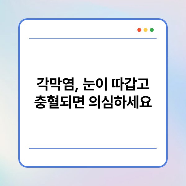 눈이 따갑고 충혈되는 증상은 여러 원인에 의해 발생할 수 있으며, 그 중 하나가 각막염입니다. 각막염은 각막에 염증이 생기는 질환으로, 심한 경우 시력에 영향을 줄 수 있습니다. 이 글에서는 각막염의 증상, 원인, 진단 및 치료 방법에 대해 상세히 설명하겠습니다. 눈 건강을 지키기 위해 필요한 정보를 제공하니 끝까지 읽어주시기 바랍니다.