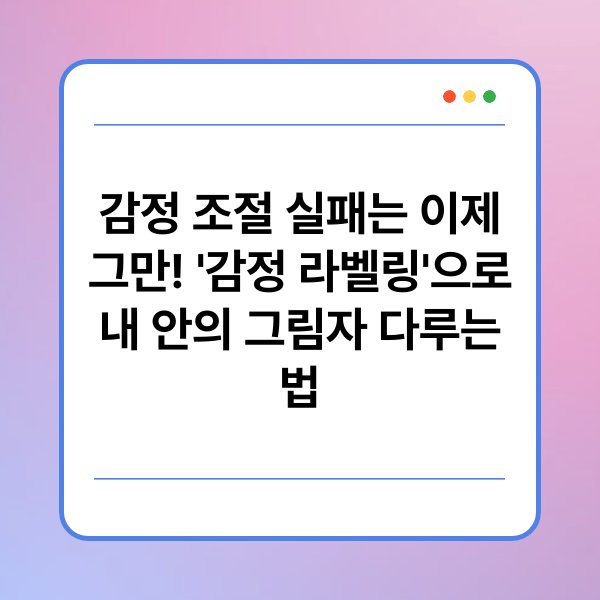 감정 라벨링은 자신이 느끼고 있는 감정에 이름을 붙이는 과정을 말해요. 예를 들어, "지금 나는 슬프다" 또는 "나는 기쁘다"라고 스스로 말하는 것이죠. 이렇게 명확하게 감정을 인식하면, 그 감정을 더 잘 다룰 수 있게 돼요. 감정은 우리가 매일 느끼는 것이지만, 그 감정이 무엇인지 모른다면 조절하기가 어려워요. 제가 처음 이 방법을 알았을 때, 정말 많은 도움이 됐답니다!