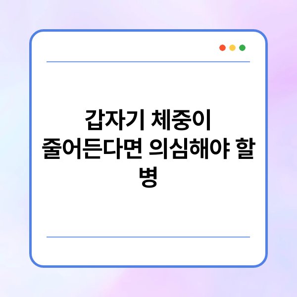 갑작스러운 체중 감소는 여러 질환의 신호일 수 있습니다. 제가 아는 한, 심장 질환이나 감염증도 체중 감소를 유발할 수 있죠. 특히, 심각한 질환일수록 증상이 다양하게 나타날 수 있으니, 주의가 필요해요.