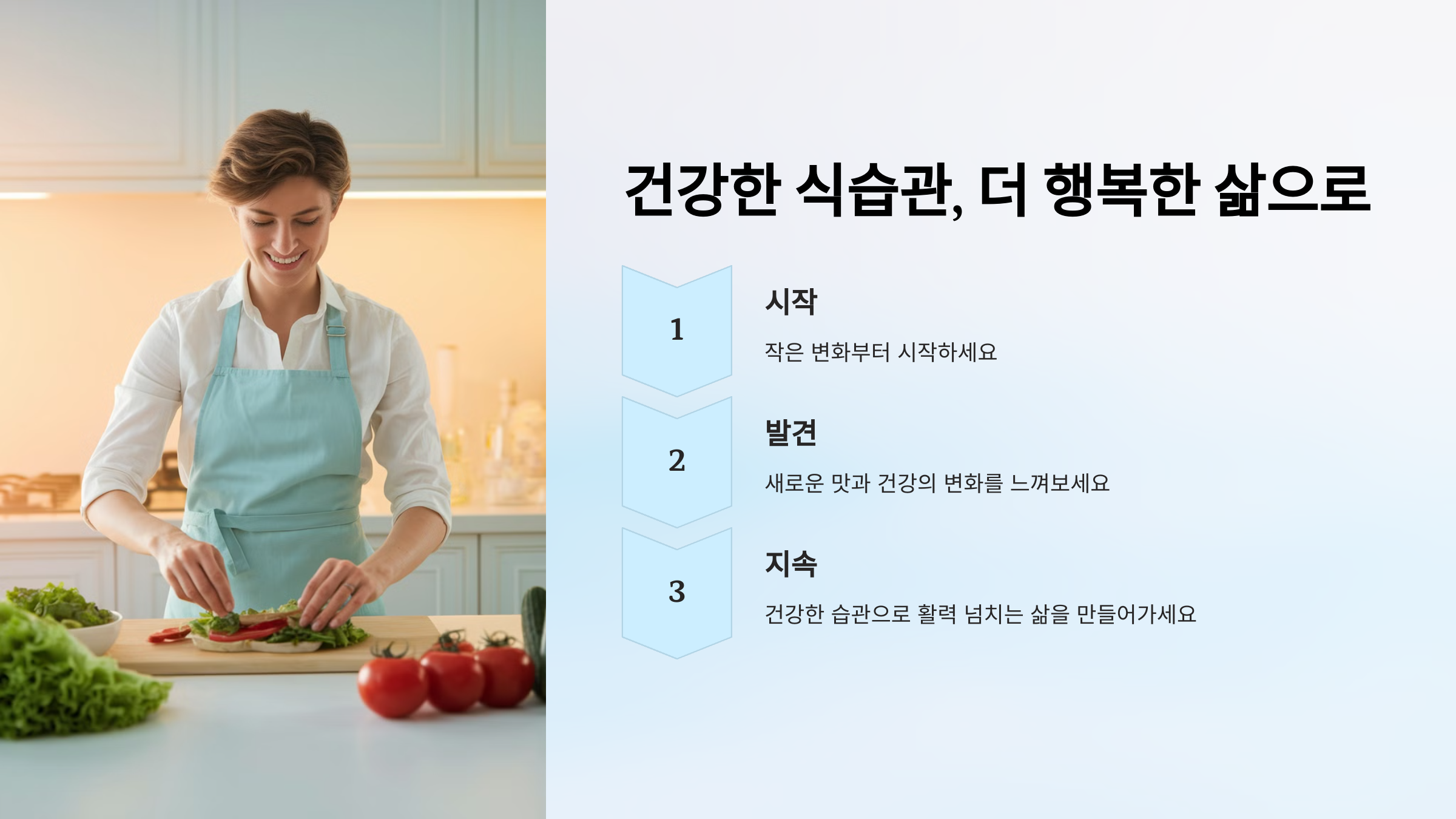 저도 처음에는 건강한 식습관을 유지하는 것이 어렵게만 느껴졌어요. 하지만 조금씩 실천하다 보니, 새로운 맛을 발견하게 되고, 몸과 마음이 건강해지는 변화를 느끼게 되었어요.