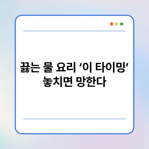 끓는 물 요리는 많은 요리의 기본이자 핵심 기술입니다. 하지만 이 과정에서 '이 타이밍'을 놓치면 요리가 망칠 수 있습니다. 적절한 타이밍을 이해하고 관리하는 것은 맛과 식감을 좌우하는 중요한 요소입니다. 본문에서는 끓는 물 요리에서 타이밍을 놓치지 않기 위한 핵심 정보를 다루겠습니다. 이 내용을 통해 요리의 완성도를 높일 수 있는 방법을 알아보겠습니다.
