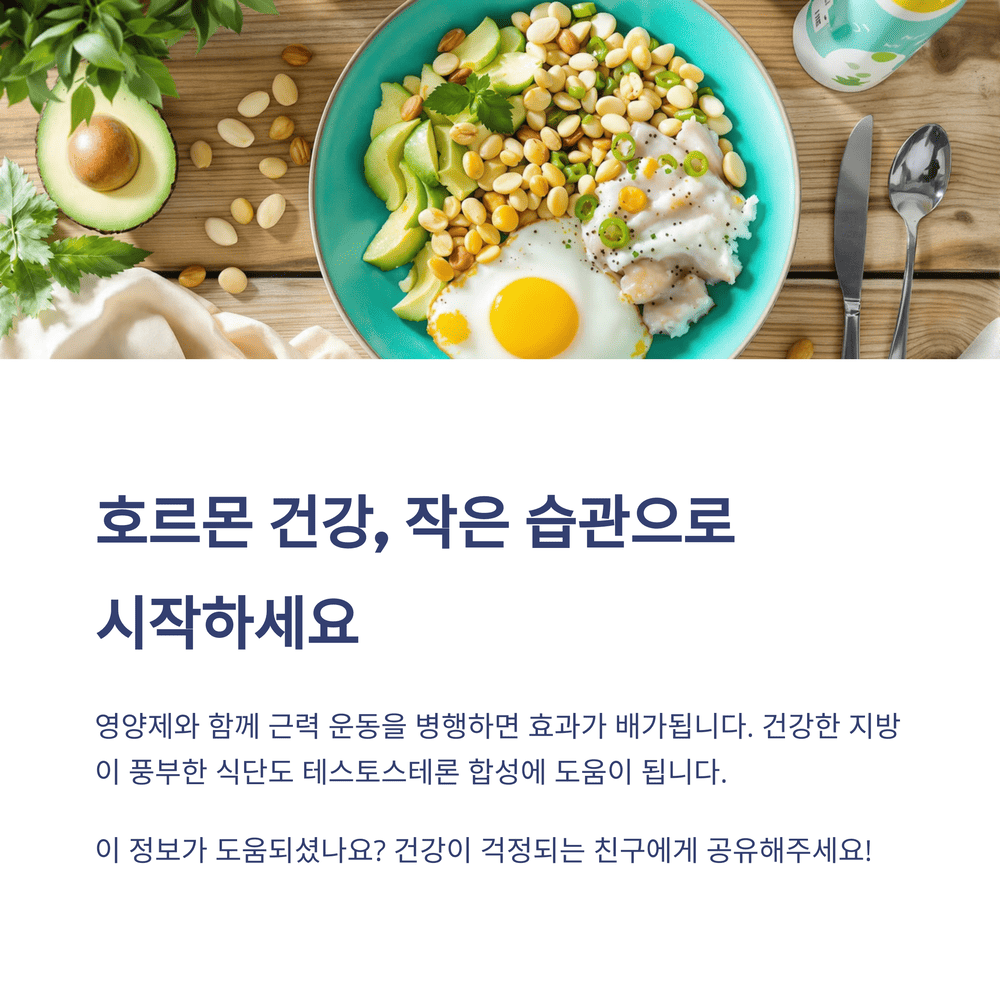 남성 호르몬 건강 챙기는 건 결국 작은 습관에서 시작돼요. 영양제 꾸준히 먹고, 운동 좀 하고, 식단 신경 쓰면 분명 달라질 거예요. 나이 들어도 활력 넘치는 삶 살고 싶지 않나요?