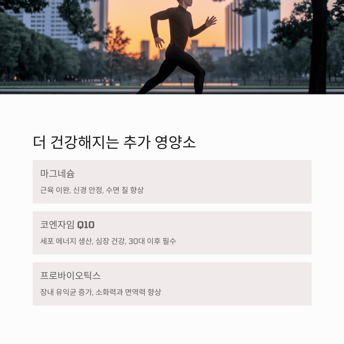 ‘바이오타임즈’(2024년)에서도 건강기능식품이 생활 습관과 조화를 이룰 때 최고의 효과를 낸다고 했어요. 아침 산책하고 영양제 챙기면 하루가 상쾌해지는 게 느껴져요.