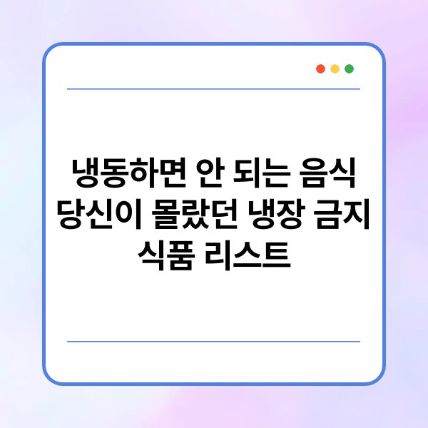 냉동 보관이 일반적으로 권장되는 다양한 식품이 있지만, 일부 식품은 냉동하면 품질 저하나 안전 문제를 초래할 수 있습니다. 이러한 냉동 금지 식품을 제대로 이해하는 것은 가정에서의 식품 관리에 매우 중요합니다. 본문에서는 냉동하면 안 되는 음식에 대한 정보를 제공하고, 이를 통해 식품 안전과 품질 유지의 필요성을 강조할 것입니다. 또한, 냉장 금지 식품 리스트를 통해 올바른 식품 보관 방법을 안내하겠습니다.