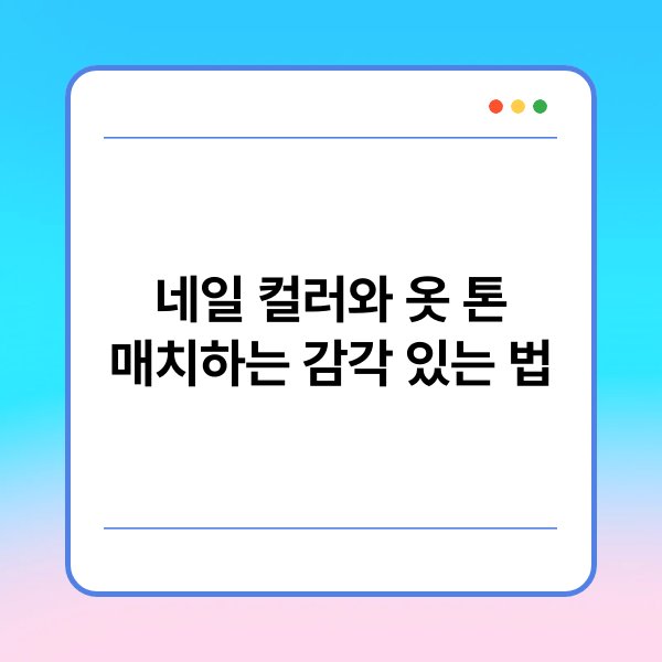 A3: 네일 컬러와 의상의 톤을 맞추는 것이 중요합니다. 톤온톤 스타일링이나 대비 색상 활용으로 세련된 느낌을 줄 수 있습니다.