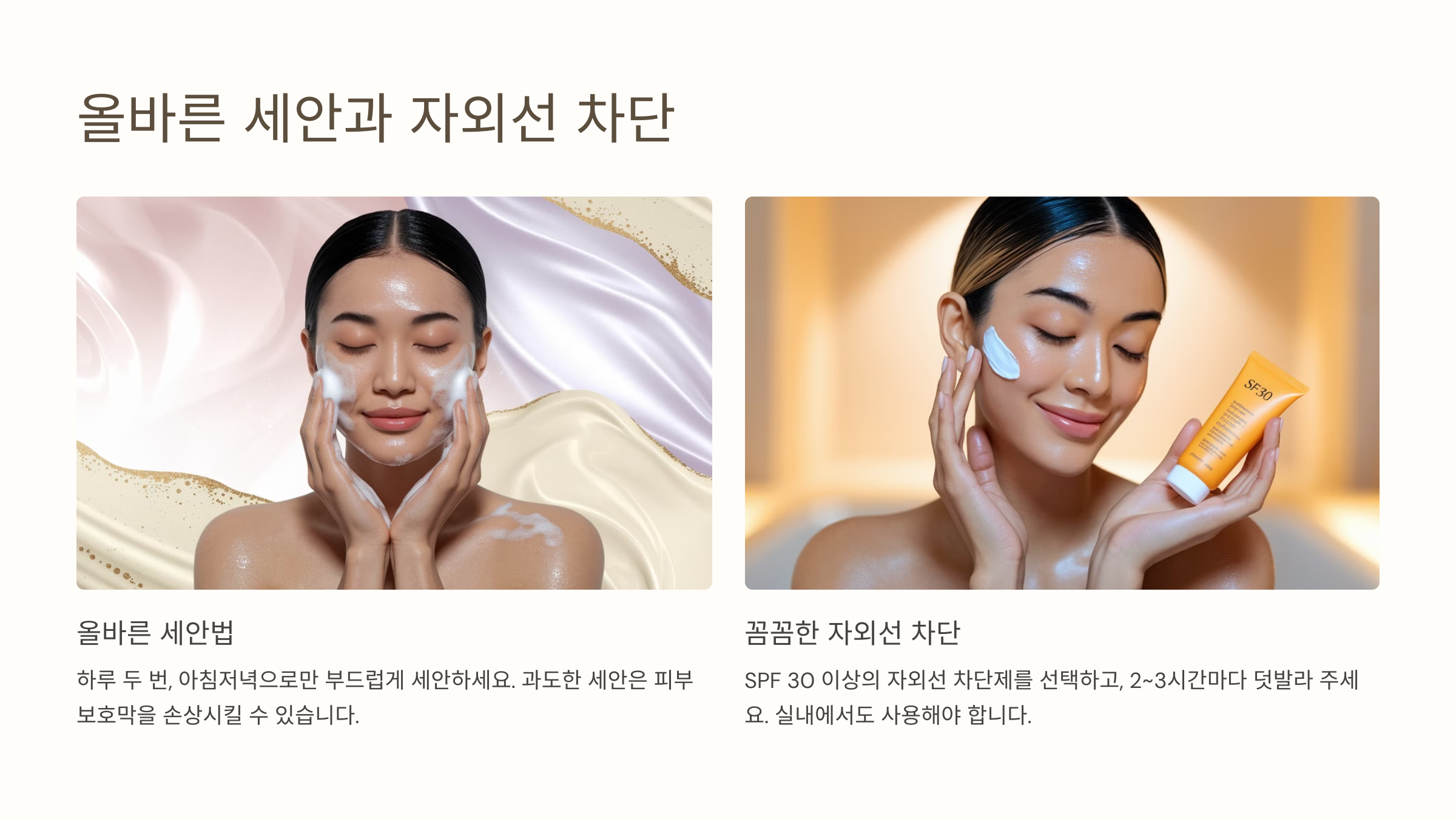 거울을 보다가 "어? 주름이 또 늘었나?" 하고 놀란 적이 있는가? 평소에 피부 관리를 신경 쓴다고 생각했지만, 어느 날 문득 눈가에 잔주름이 늘어난 것을 발견했다. 그때부터 피부 노화에 대해 진지하게 고민하기 시작했다. 노화는 피할 수 없지만, 적절한 관리로 늦출 수 있다는 사실을 알게 되었고, 오늘은 노화를 늦추기 위해 주의해야 할 피부 관리 방법에 대해 이야기해보려고 한다.