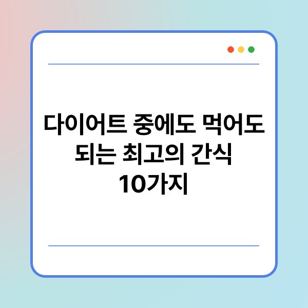다이어트를 하는 동안 간식 선택은 많은 사람들에게 어려운 과제가 될 수 있습니다. 하지만 다이어트 중에도 건강하게 즐길 수 있는 간식이 존재합니다. 이 글에서는 다이어트 중에도 먹어도 되는 최고의 간식 10가지를 소개합니다. 각각의 간식이 가진 영양적 가치와 효과를 설명하여 독자들이 올바른 선택을 할 수 있도록 돕겠습니다. 건강한 간식으로 다이어트를 지속할 수 있는 방법을 알아보세요.