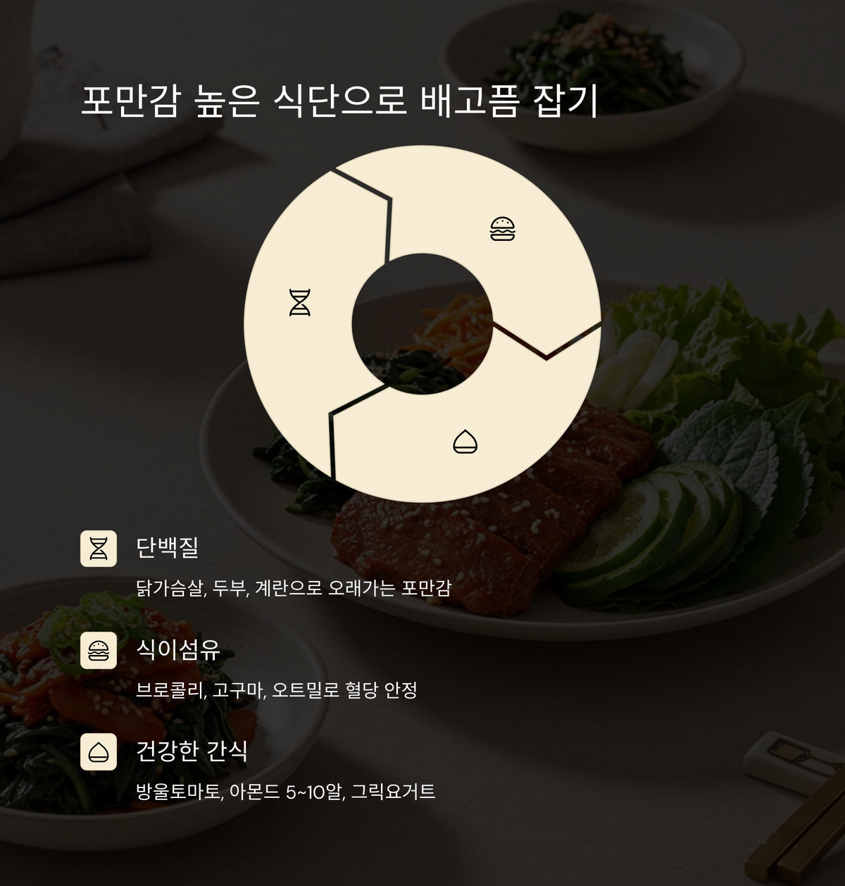다이어트를 시작하면 제일 먼저 부딪히는 게 뭐냐면, 바로 배고픔이에요. 맛있는 음식 생각나고, 배고프다고 위에서 꼬르륵 소리가 나면 의지가 흔들리기 마련이죠. 하지만 다이어트 중 배고픔을 무작정 참는 건 오히려 역효과를 낼 수 있어요. 폭식으로 이어지거나 건강을 해칠 수도 있죠.