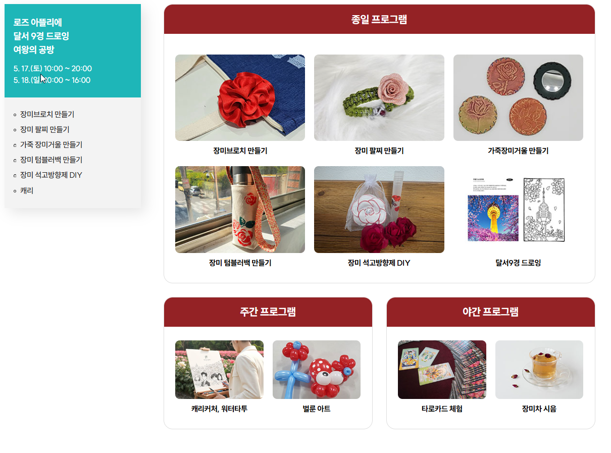- 로즈 아뜰리에: 장미 팔찌 만들기 등 다양한 체험 부스.