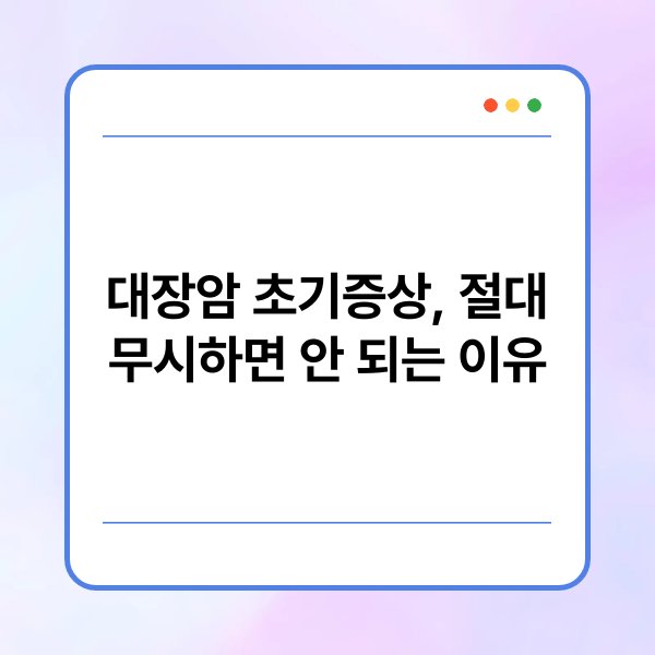 ✅대장암 초기 증상으로는 복통, 변비, 설사 등이 있으며, 이는 신체의 변화로 인식되어야 합니다.