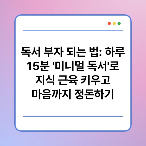 독서, 정말 많은 사람들이 하고 싶어하는 일이에요. 하지만 바쁜 일상 속에서 시간을 내기란 쉽지 않죠. 그래서 오늘은 하루 15분으로 지식 근육을 키우고 마음까지 정돈할 수 있는 방법인 '미니멀 독서'에 대해 이야기해보려고 해요. 이 방법을 통해 독서 부자가 되는 법을 함께 알아보아요! 정말 간단하고 효과적인 방법이니까요.