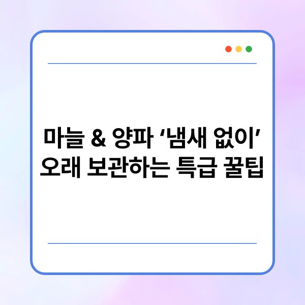 냄새 없이 마늘과 양파를 오래 보관하는 방법, 궁금하지 않으신가요? 주방에서 빠질 수 없는 이 두 가지 재료는 음식의 맛을 한층 더 끌어올리지만, 특유의 냄새로 인해 보관이 쉽지 않습니다. 오늘은 마늘과 양파의 냄새를 없애고, 오래 보관할 수 있는 꿀팁을 소개합니다. 이 방법을 활용하면 소중한 재료를 더욱 효과적으로 관리할 수 있습니다. 지금부터 알아보겠습니다!