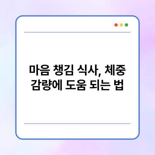 A2. 마음 챙김 식사는 포만감을 인식하고, 과식을 방지하는 데 도움을 줍니다. 이를 통해 자연스럽게 체중 감소를 유도할 수 있습니다.