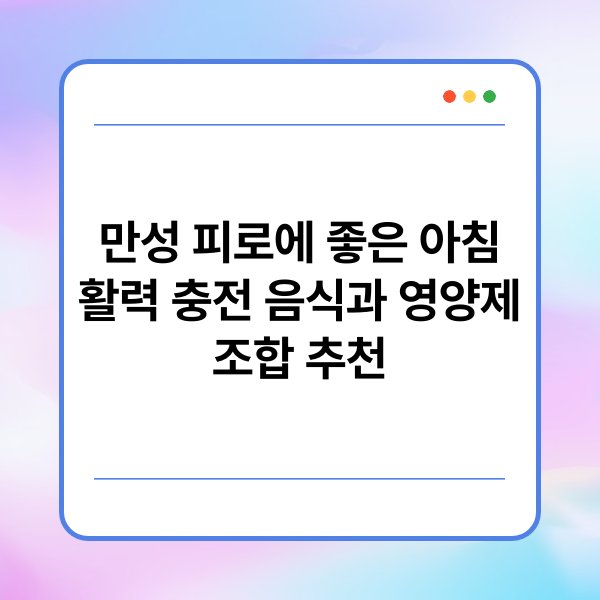 만성 피로로 힘들어하시는 분들, 정말 많으시죠? 저도 그런 경험이 있어서 얼마나 힘든지 잘 알고 있어요. 그래서 오늘은 아침에 활력을 주는 음식과 영양제를 소개해드리려고 해요. 이 조합을 활용하시면 하루를 더욱 상쾌하게 시작하실 수 있을 거예요. 함께 알아볼까요?