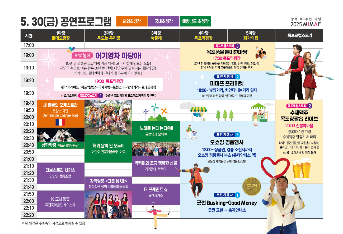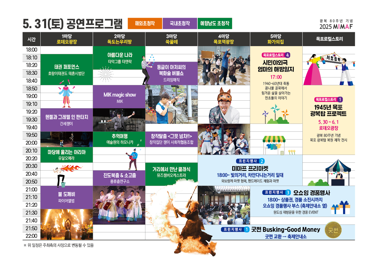 2025년은 광복 80주년을 기념하는 해예요. 목포세계마당은 지역 이야기를 담은 5선 프로그램으로 감동을 선사해요.