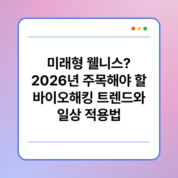 안녕하세요! 오늘은 2026년에 주목해야 할 바이오해킹 트렌드와 일상에서 쉽게 적용할 수 있는 미래형 웰니스에 대해 이야기해보려고 해요. 바이오해킹이라고 하면 조금 낯설 수 있지만, 사실 우리의 건강과 웰빙을 향상시키기 위한 다양한 방법을 의미해요. 이 글을 통해 여러분이 바이오해킹 트렌드를 이해하고, 일상에서 실천할 수 있는 팁을 제공해드릴게요. 함께 건강하고 행복한 미래를 만들어보아요!