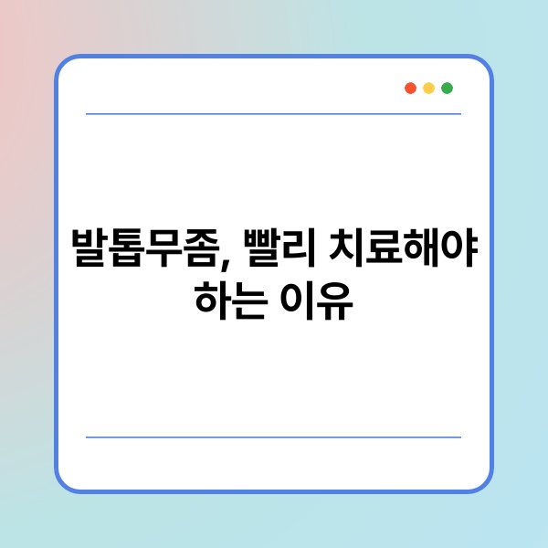 발톱무좀은 조기에 치료하는 것이 가장 중요합니다. 치료를 지연할 경우 증상이 악화되고, 치료에 더 오랜 시간이 소요됩니다. 따라서 초기 증상이 나타나면 즉시 치료를 시작해야 합니다.