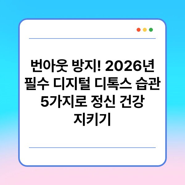현대 사회에서 번아웃은 많은 이들이 겪고 있는 큰 문제입니다. 특히 디지털 기기의 사용이 증가하면서, 정신적으로 지치기 쉬운 상황이 많아지고 있죠. 그래서 이번 글에서는 2026년을 대비해 정신 건강을 지키기 위한 필수 디지털 디톡스 습관 5가지를 소개해드리려 해요. 여러분의 마음과 몸을 힐링할 수 있는 방법을 함께 알아보면 좋겠어요. 자, 그럼 시작해볼까요?