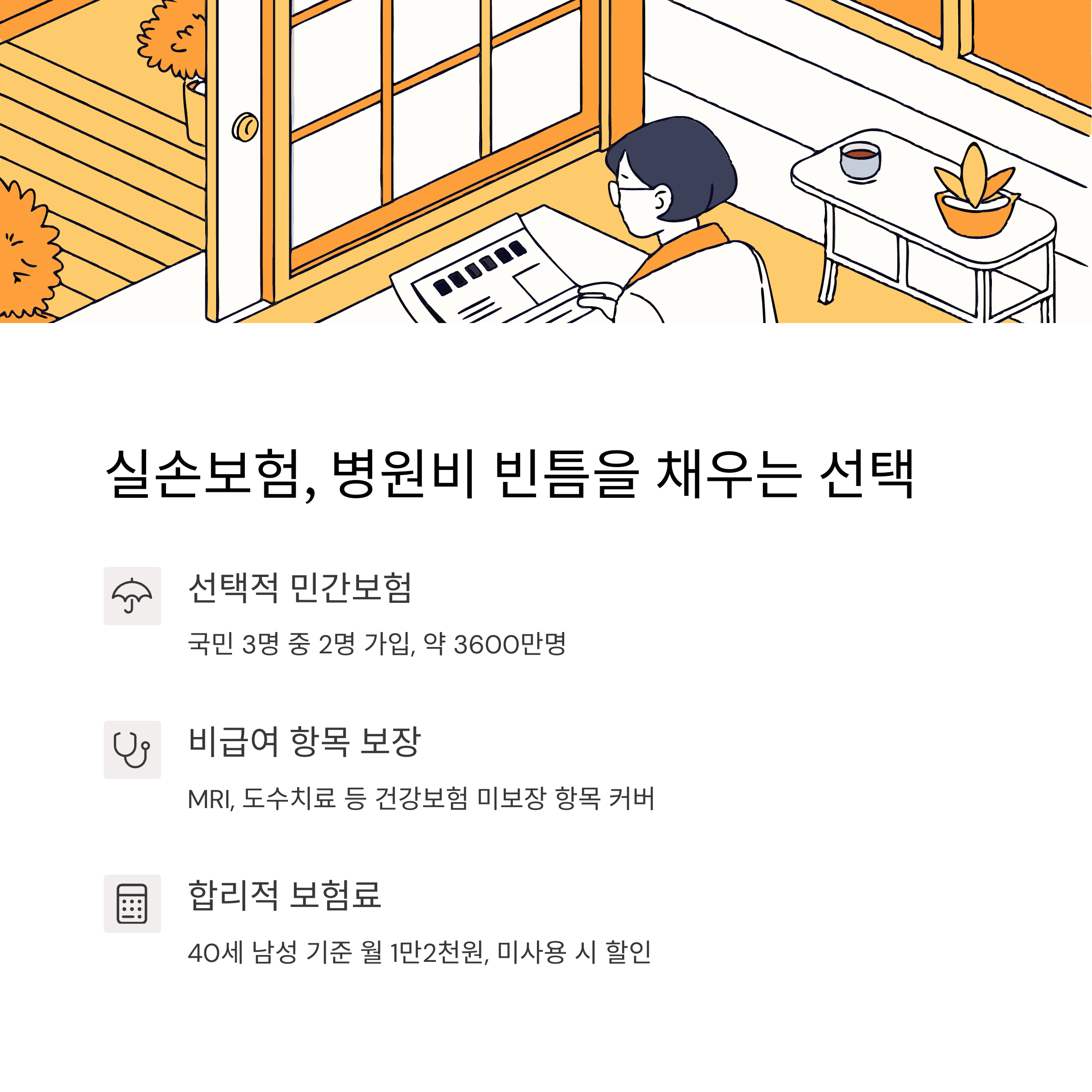 건강보험은 필수, 실손보험은 선택이에요