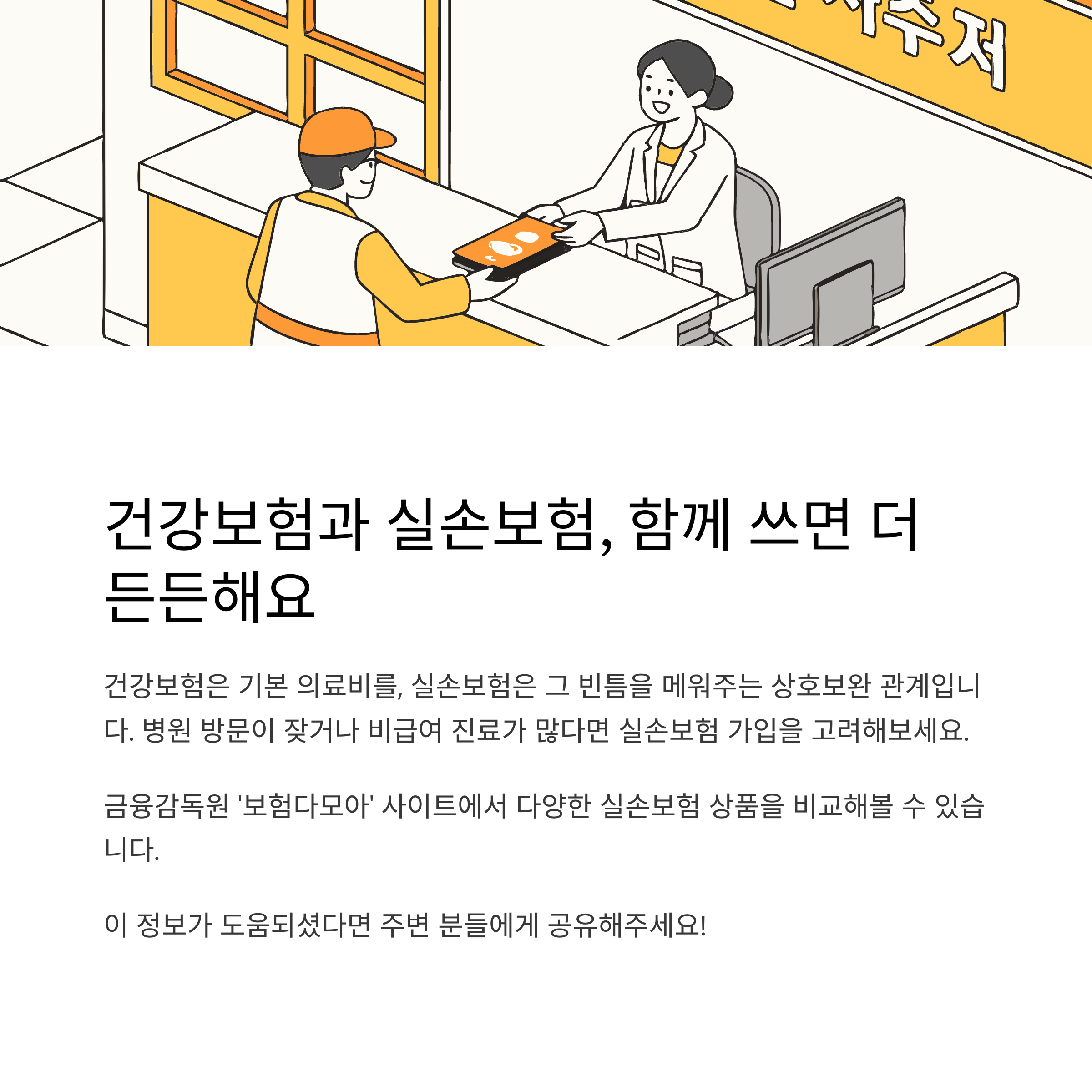 저도 병원 갔을 때 건강보험 덕에 큰돈 안 들고, 실손보험으로 남은 비급여까지 커버돼서 마음이 놓이더라고요. 이 둘이 같이 있으면 병원비 걱정이 훨씬 덜해요.