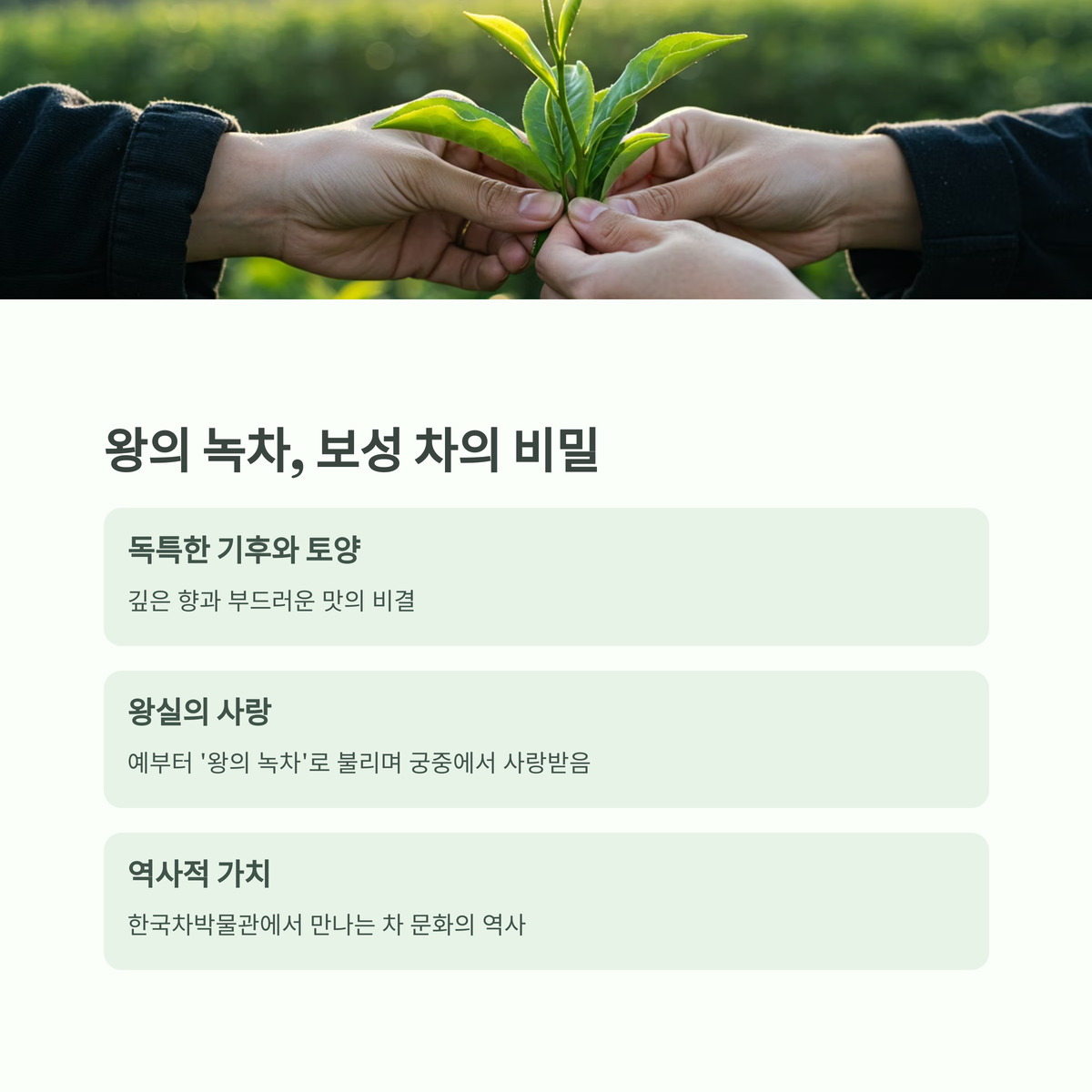 보성 차는 독특한 기후와 토양 덕에 깊은 향과 부드러운 맛을 자랑해요. 예부터 ‘왕의 녹차’로 불리며 궁중에서 사랑받았던 차죠.