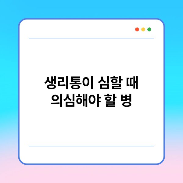 혹시 생리통이 너무 심해 고생하고 계신가요? 많은 여성분들이 생리통을 경험하지만, 때때로 그 통증이 심하면 다른 질병을 의심해봐야 할 때가 있어요. 오늘은 생리통이 심할 때 어떤 질병이 의심되는지 알아보도록 할게요. 함께 알아보면서, 건강에 대한 이해를 높여보세요!