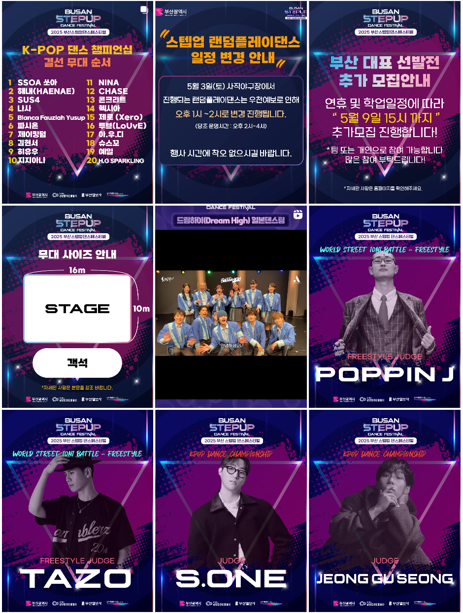 - 인스타 체크: @busan_stepup_dance_festival에서 최신 소식 확인.