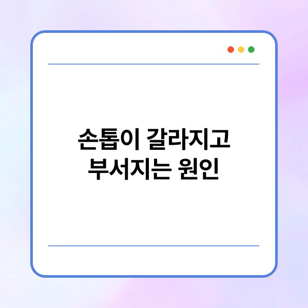 손톱이 갈라지고 부서지는 현상은 많은 사람들이 경험하는 문제입니다. 이는 단순한 미용 문제가 아닌, 건강 상태와 직결될 수 있습니다. 손톱의 상태는 영양 부족, 환경적 요인, 혹은 질병의 신호일 수 있습니다. 본 글에서는 손톱이 갈라지고 부서지는 다양한 원인에 대해 자세히 설명하고, 이를 예방하고 관리하는 방법을 제시합니다. 독자들은 손톱 건강을 지키기 위한 유용한 정보를 얻을 수 있을 것입니다.
