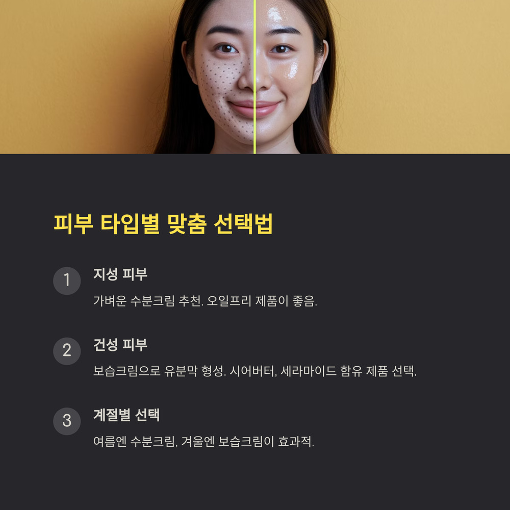 수분크림이든 보습크림이든, 결국엔 내 피부에 맞는 걸 찾는 게 핵심이에요. 둘 다 장단점이 있어서 상황에 따라 골라 쓰면 피부 고민 덜고 촉촉함 오래 유지할 수 있죠.