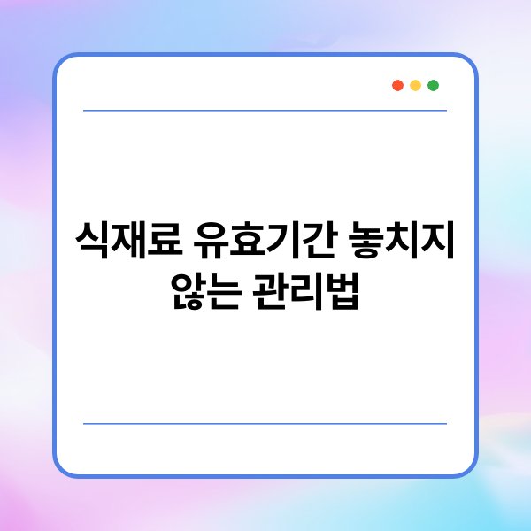 식재료 유효기간 관리의 핵심은 정기적인 점검과 체계적인 기록입니다. 이를 통해 식재료의 신선도를 보장하고, 불필요한 낭비를 줄일 수 있습니다. 효과적인 관리 방법을 통해 건강한 식단을 유지하는 데 도움이 됩니다.