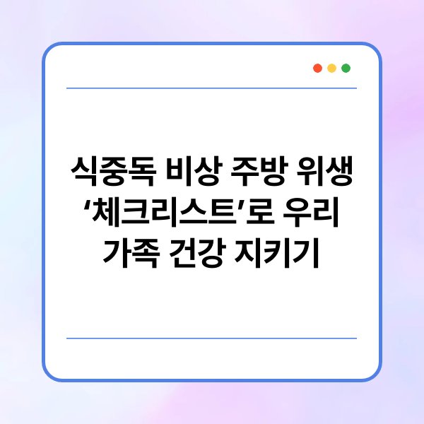 | 주방 위생 체크리스트 항목 | 손 씻기, 조리 도구 소독의 중요성 |