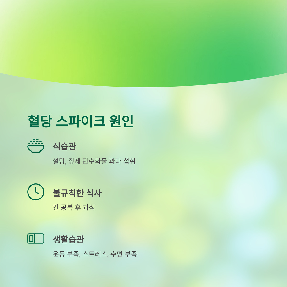 생활습관도 영향을 줘요. 운동 부족, 스트레스, 수면 부족은 혈당 조절을 어렵게 만들어요. 스트레스는 코르티솔 같은 호르몬을 분비해 혈당을 올리고, 수면 부족은 포도당 분해 능력을 떨어뜨려 혈당이 더 높아질 수 있어요. 흡연이나 과음도 혈당 스파이크를 악화시키는 요인이에요.