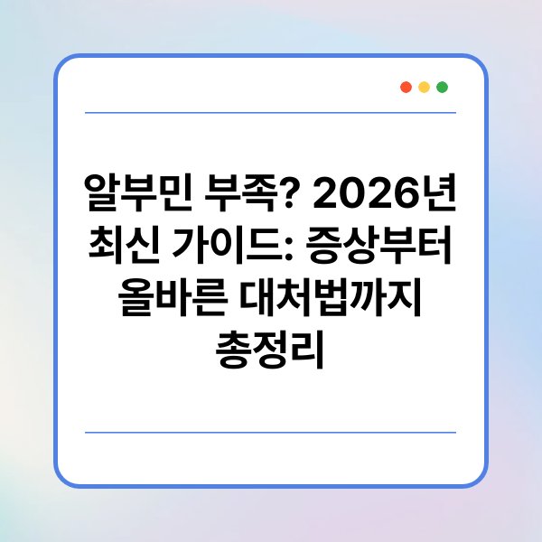 알부민 부족이란 무엇일까요? 우리 몸에서 중요한 역할을 하는 단백질인 알부민이 부족해지면 여러 가지 증상이 나타날 수 있습니다. 이 글에서는 알부민 부족의 증상과 그에 대한 올바른 대처법을 2026년 최신 정보를 바탕으로 정리해보겠습니다. 알부민이 우리 건강에 미치는 영향과 함께, 어떻게 예방하고 관리할 수 있는지를 알아보면 좋겠어요. 함께 알아보는 시간을 가져보시죠!
