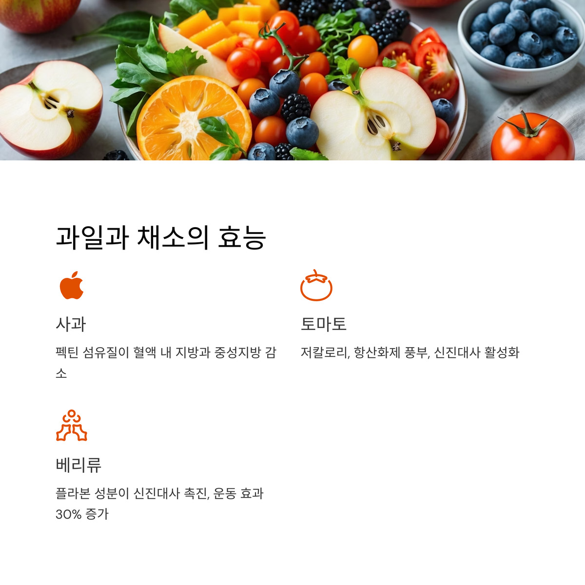 딸기, 블루베리 같은 베리류는 체지방을 태우는 데 탁월해요. 플라본 성분이 신진대사를 촉진하고, 콜레스테롤을 조절해줘요. 연구에 따르면, 운동 전에 베리류를 먹으면 지방 연소가 30% 더 늘어난다고 해요.