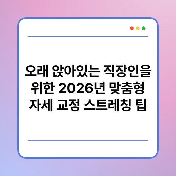 안녕하세요! 오늘은 직장에서 오래 앉아 있는 분들을 위해 2026년 맞춤형 자세 교정 스트레칭 팁을 준비했어요. 현대인의 생활에서 앉아 있는 시간이 많아지면서, 올바른 자세와 스트레칭의 중요성이 더욱 커지고 있답니다. 이 글을 통해 여러분의 몸과 마음을 가볍게 해줄 유용한 팁을 소개해드릴게요. 스트레칭을 통해 활력 넘치는 하루를 만들어보세요! 그럼 시작해볼까요?