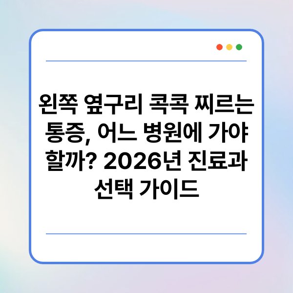 왼쪽 옆구리에서 콕콕 찌르는 통증을 느낀다면, 혹시 어떤 병원에 가야 할지 고민되시죠? 이런 통증은 때때로 일상생활에 큰 불편을 초래할 수 있습니다. 그래서 오늘은 왼쪽 옆구리 통증의 원인과 어떤 진료과를 방문해야 할지에 대해 자세히 알아보려고 해요. 이 글을 통해 통증의 원인을 파악하고, 적절한 치료를 받을 수 있는 방법을 안내해 드릴게요. 그럼 함께 시작해 볼까요?