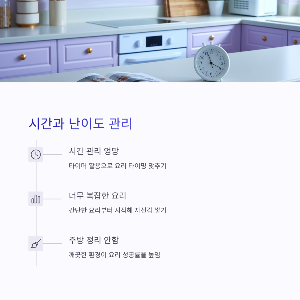 요리 초보들이 시간 관리 못해서 고생하는 경우 많아요. 예를 들어, 밥은 안 되고 국은 끓고, 고기는 타는 상황요. 타이밍 맞추는 게 요리에서 진짜 중요하거든요.