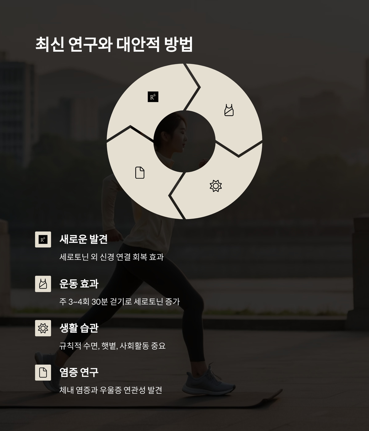 경증 우울증이라면 운동, 사회 활동, 명상 같은 비약물적 방법으로도 기분을 많이 개선할 수 있어요. 예를 들어, 주 3~4회 30분씩 걷기만 해도 세로토닌 분비가 늘어나 기분이 나아질 수 있죠. 하지만 중증 우울증이라면 약물 치료가 필수적이에요.