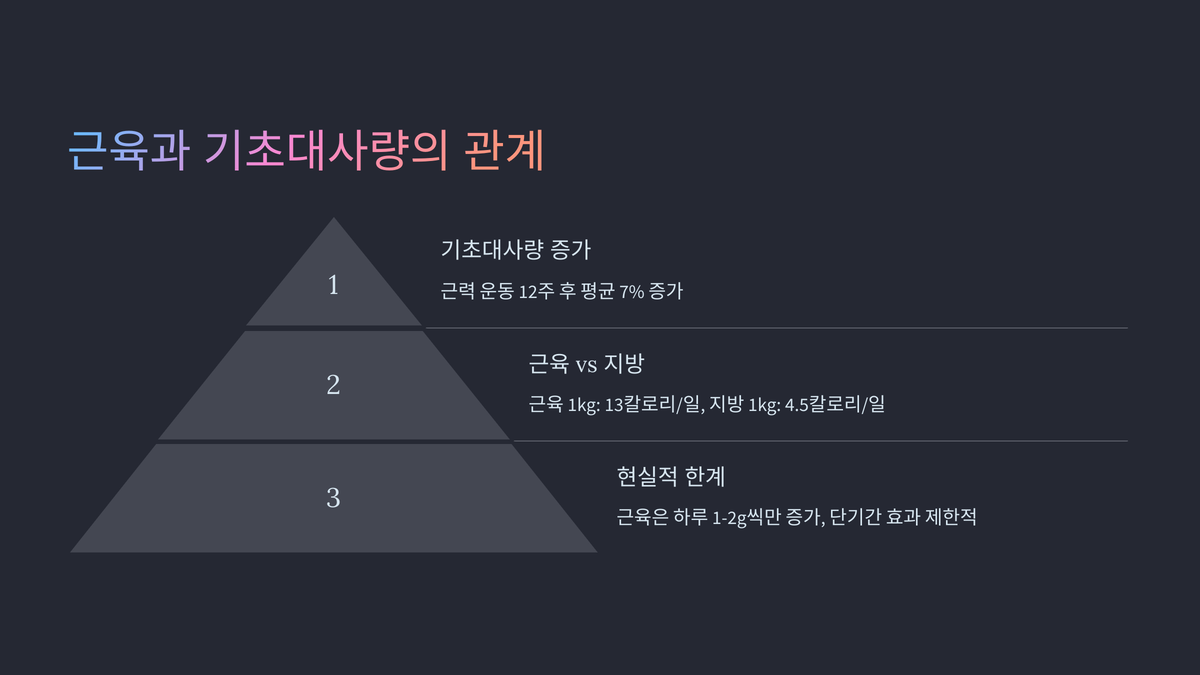 2024년 미국 국립보건원(NIH) 연구를 보면, 근력 운동을 꾸준히 한 사람들은 12주 후 기초대사량이 평균 7% 정도 증가했다고 해요. 이게 의미하는 건 하루 1,800칼로리를 태우던 사람이 1,926칼로리까지 태울 수 있게 된다는 거죠. 근데 여기서도 함정이 있어요. 근육은 하루에 1~2g씩만 늘어나니까, 단기간에 효과를 보려면 엄청난 노력이 필요해요. 그러니까 운동만 열심히 한다고 바로 살이 쭉쭉 빠지진 않는다는 거예요.
