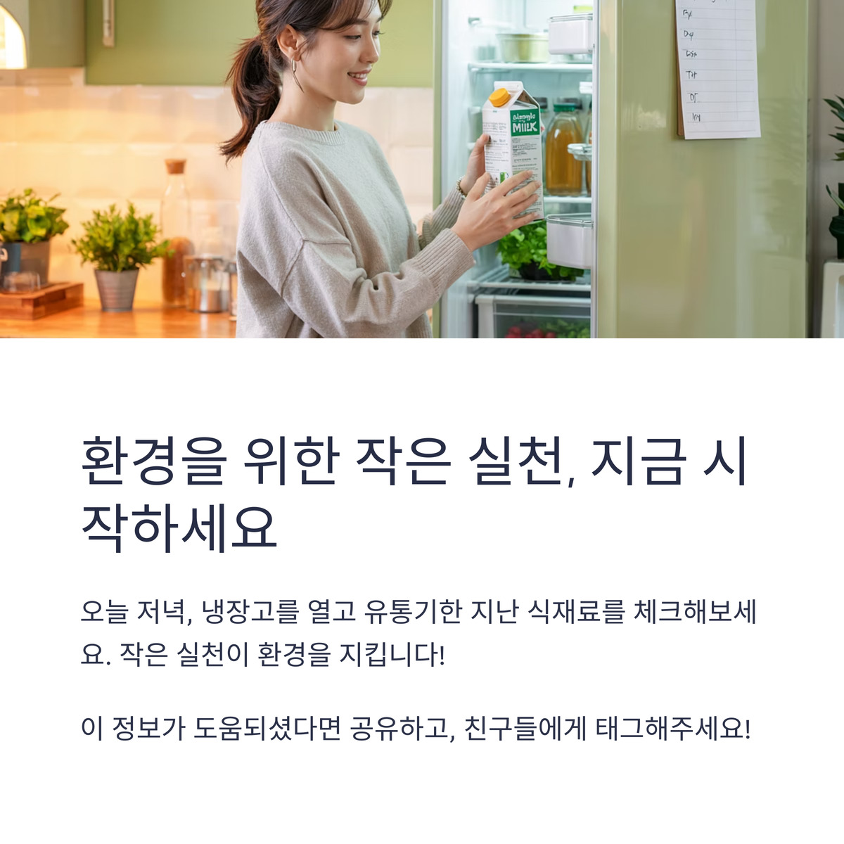 오늘 저녁, 냉장고를 열고 유통기한 지난 식재료를 체크해보세요. 작은 실천으로 주방이 더 스마트해지고, 환경도 지킬 수 있답니다!