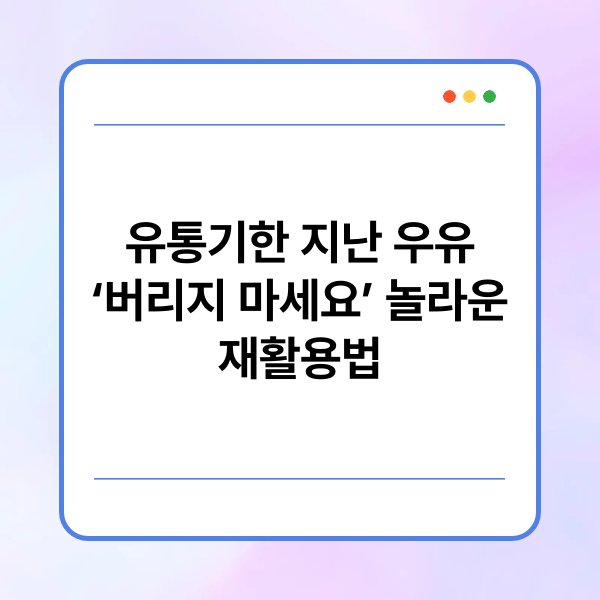 유통기한이 지난 우유는 일반적으로 버려지는 경우가 많지만, 최근에는 이를 재활용하는 다양한 방법이 주목받고 있습니다. 우유의 주성분인 단백질과 칼슘을 활용하여 새로운 용도로 변신시킬 수 있는 가능성이 열리고 있습니다. 본 글에서는 유통기한이 지난 우유를 버리지 않고 효과적으로 재활용할 수 있는 방법을 소개합니다. 이를 통해 환경 보호와 자원 절약에 기여할 수 있는 실질적인 정보를 제공합니다.