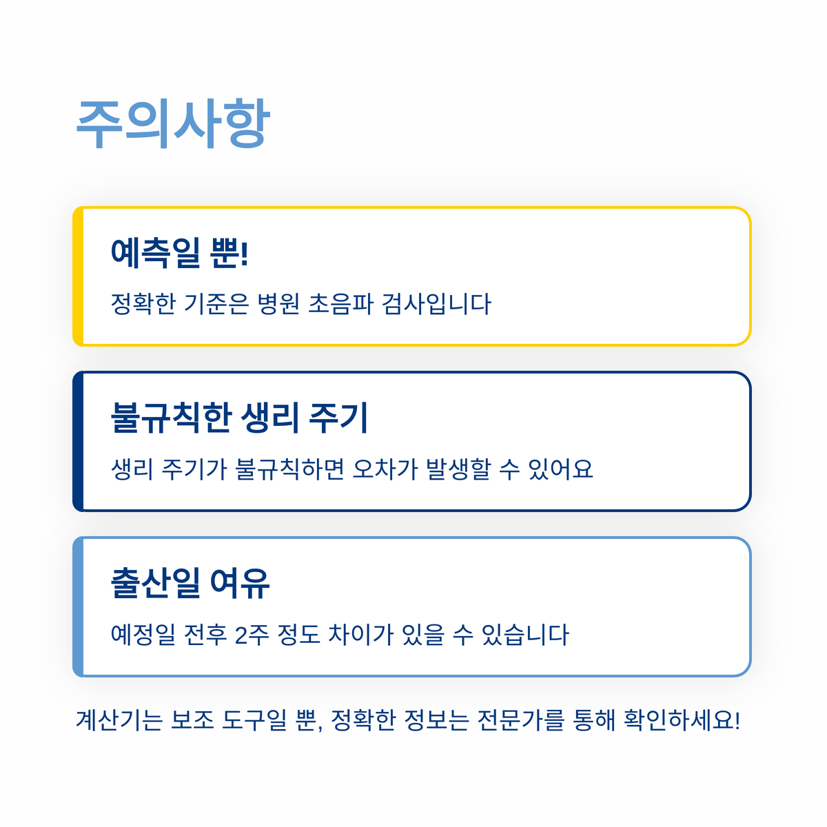 임신 주 수 계산기는 편리하지만, 그 한계를 명확히 이해하고 활용하는 것이 중요해요. 몇 가지 주의사항을 알려드릴게요.