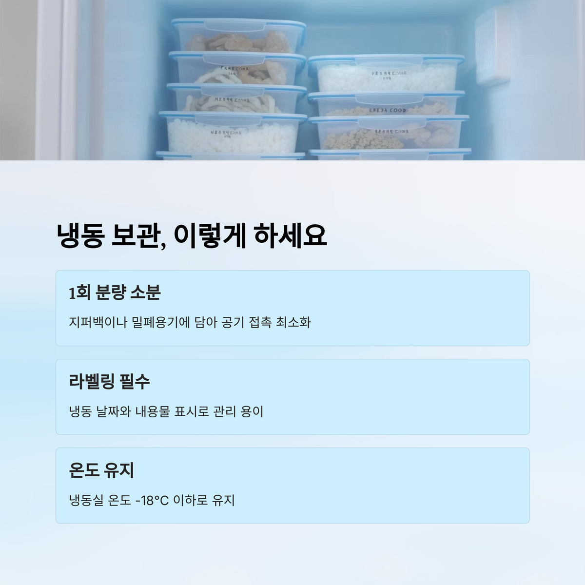- 냉동 날짜와 내용물 라벨링