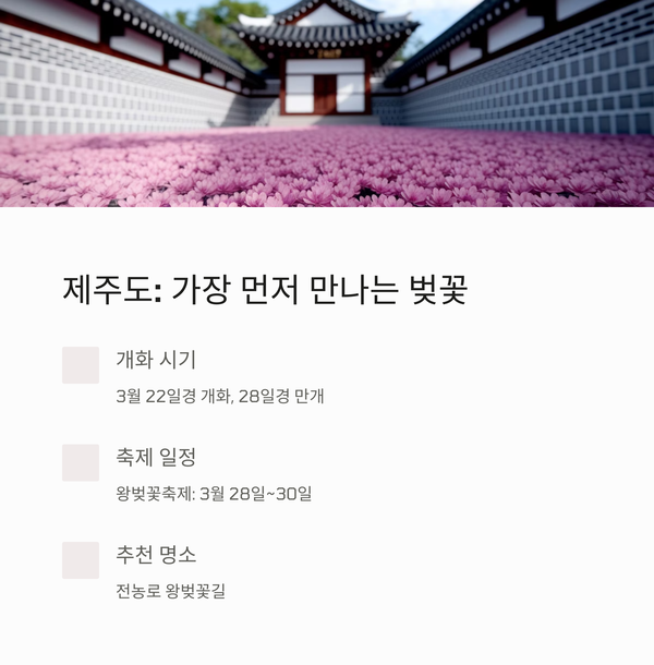제주도: 가장 먼저 만나는 벚꽃