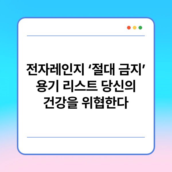 최근 전자레인지를 사용하는 가정이 증가하면서, 이에 적합하지 않은 용기로 인한 건강 문제가 우려되고 있습니다. 특히, 특정 재질의 용기는 전자레인지에서 가열할 경우 유해 물질이 방출될 수 있습니다. 본 글에서는 전자레인지에 절대 사용해서는 안 되는 용기 리스트를 정리하고, 이로 인해 발생할 수 있는 건강 위험에 대해 설명하겠습니다. 이를 통해 안전한 조리 방법과 용기 선택에 대한 정보를 제공하고자 합니다.