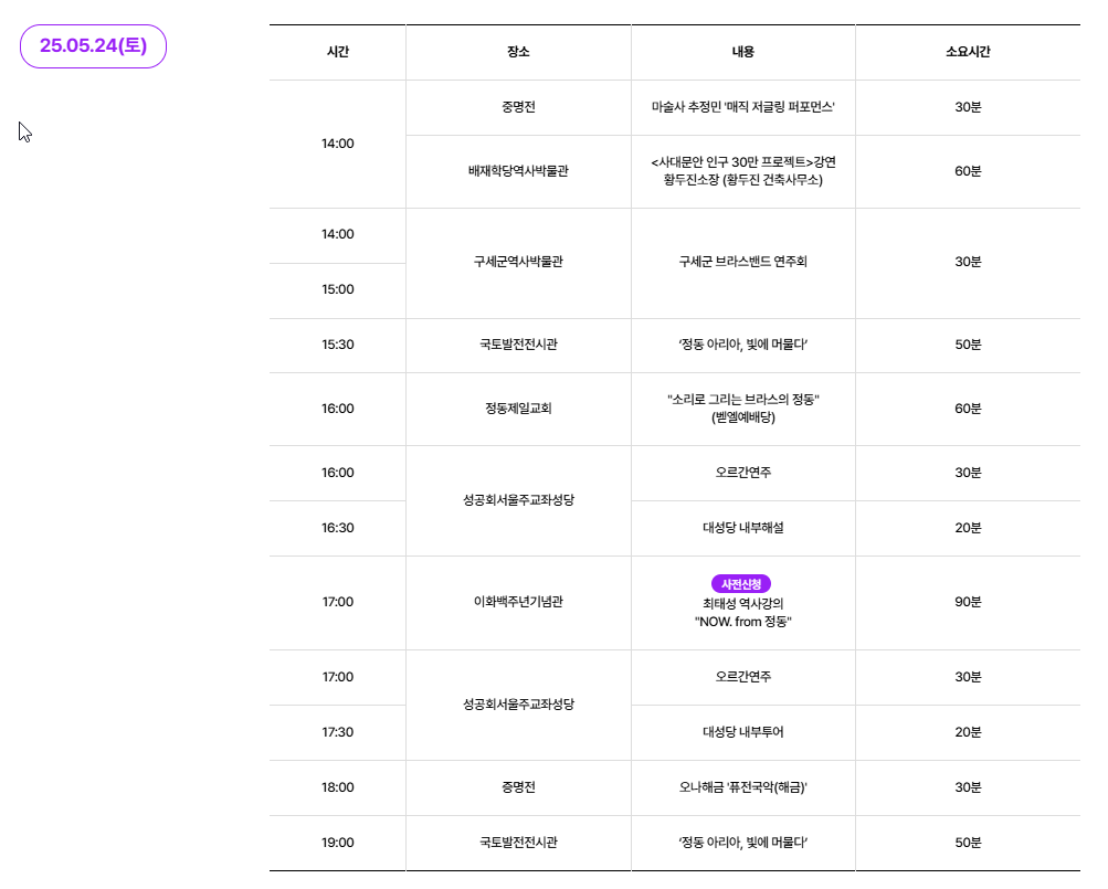 - 야로(역사해설 투어): 문화해설사와 함께하는 정동길 투어.