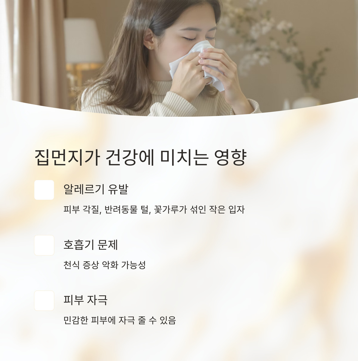 집에서 재채기가 멈추지 않거나, 공기가 답답하다고 느껴진 적 있죠? 그건 집먼지가 쌓여서일 가능성이 커요. 집먼지는 단순히 보기 싫은 게 아니라 알레르기, 천식, 피부 문제를 일으킬 수 있는 골칫거리예요. 하지만 걱정 마세요. 집먼지 없애는 법을 제대로 알면 집을 깨끗하고 건강하게 유지할 수 있답니다. 신뢰할 만한 자료를 바탕으로, 누구나 쉽게 따라 할 수 있는 방법을 알려드릴게요. 복잡한 도구 없이도 집먼지를 줄이고, 맑은 공기를 되찾는 비법을 지금 시작해봐요!