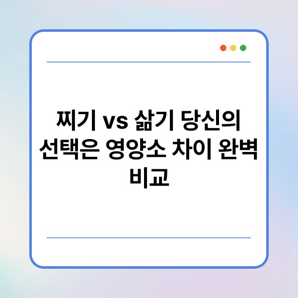 찌기와 삶기의 비교를 통해 각 조리법의 영양소 차이를 이해하고, 건강한 식습관을 위한 올바른 선택을 할 수 있습니다. 이러한 정보는 개인의 건강 목표에 맞춰 조리 방법을 선택하는 데 도움이 될 것입니다. 최종적인 결정은 개인의 건강 상태와 선호도를 반영해야 합니다.