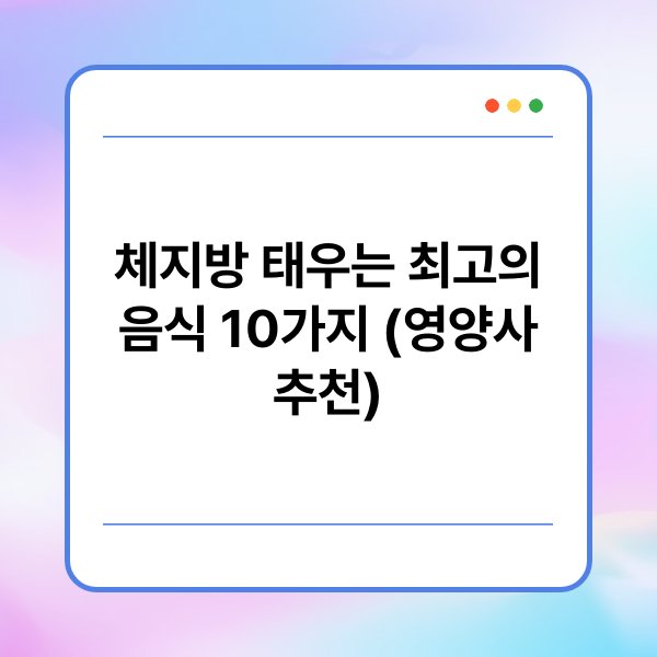 체지방을 효과적으로 줄이는 것은 많은 사람들이 관심을 갖는 주제입니다. 특히, 특정 음식이 체지방을 태우는 데 도움을 줄 수 있다는 연구 결과가 늘어나고 있습니다. 이 글에서는 영양사들이 추천하는 체지방 태우는 최고의 음식 10가지를 소개합니다. 각 음식이 지닌 효능과 그 이유를 설명하며, 체지방 감소에 도움을 줄 수 있는 방법을 살펴보겠습니다. 이를 통해 건강한 식습관을 유지하는 데 기여할 수 있는 정보를 제공하고자 합니다.